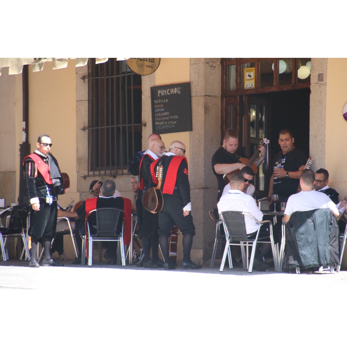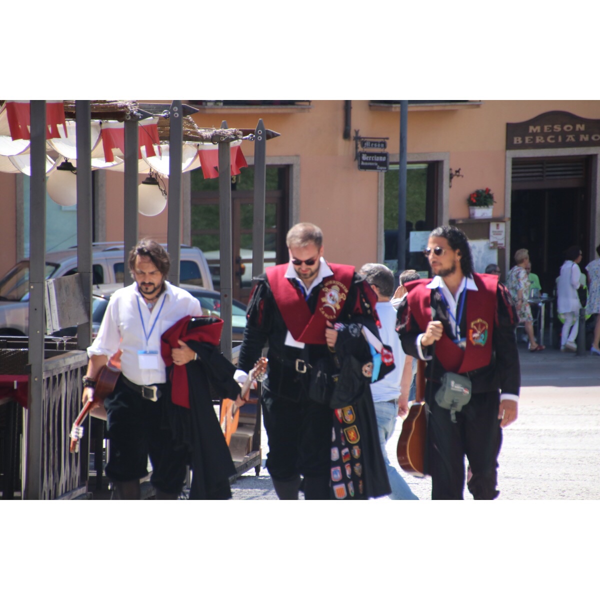 These are the local Tuna who were performing in Ponferrada on Saturday. The Tuna is a group of university students in traditional university dress who play traditional instruments and sing serenades. The tradition originated in Spain and Portugal in the 13th century as a means of students to earn money or food. Nowadays students don’t belong to a “tuna” for money nor food, but seeking to keep a tradition alive, for fun, to travel a lot and to meet new people from other universities.