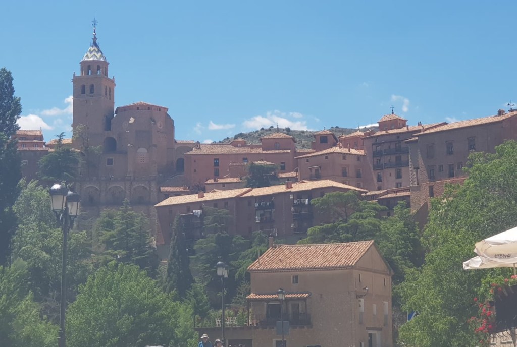 Torres de Albarracín has around 170 inhabitants and a very quaint old church and not much else. However, it’s main attractions are trails and routes for hiking , equestrian and bicycle touring activities, as well as river fishing – but we weren’t here for any of these. We are staying in a lovely cool (as in temperature) guest house and have a lovely room at the top of the house with our own terrace which has gorgeous views out over the valley. The host does all the cooking and prepared us a lovely meal tonight and will serve breakfast on the terrace. She has promised it will be “estupendo” now we didn’t quite get whether that was the breakfast or the view in the morning 😝. Watch this space…